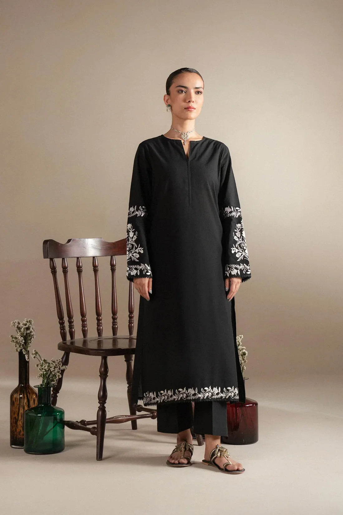 Elevate your look with this custom-fit black embroidered lawn suit set.
